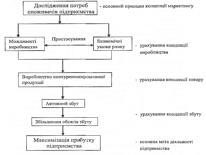 Рис. 1. Взаємозв'язок маркетингової концепції з іншими концепціями управління фірмою