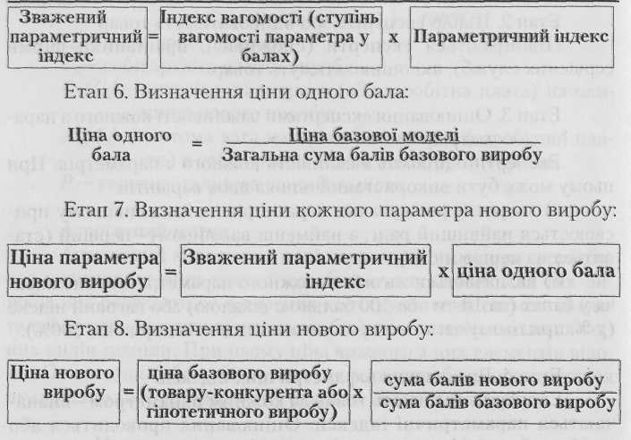 Метод встановлення ціни на основі коефіцієнта технічного рівня товару передбачає визначення ціни, що базується на суб'єктивному сприйнятті товару споживачем, яке формується його якістю, корисністю та значущістю для споживача. Коротко суть цього методу можна визначити так: ціна нового товару тим більша, чим вищий його технічний рівень порівняно з базовим (еталоном, базовою моделлю фірми, товаром-конкурентом). Цей метод дає змогу визначити ціни на нові види техніки шляхом порівняння його технічних параметрів з аналогічними параметрами виробів світового рівня. Цінність товару визначається на основі експертних оцінок. Нижче наводиться послідовність визначення ціни товару на основі коефіцієнта технічного рівня. Етап 1. Визначення переліку найважливіших параметрів, які характеризують споживчі характеристики товару Працівники фірми визначають перелік найважливіших параметрів, які характеризують споживчі характеристики товару. Етап 2. Підбір експертів, які оцінюватимуть товар Підбираються експерти (споживачі, працівники фірми сервісних служб), які оцінюватимуть товар. Етап 3. Оцінювання експертами важливості кожного з параметрів Експерти оцінюють важливість кожного з параметрів. При цьому може бути використаний один з двох варіантів: а) зворотне ранжування параметрів: найважливішому присвоюється найвищий ранг, а найменш важливому-перший (ставиться на перше місце); б) визначається вагомість кожного параметра для споживача у балах (за 10-ти або 100 бальною шкалою) або ваговий індекс(у %, при цьому загальна сума вагових індексів дорівнює 100%). Етап 4. Визначення параметричних індексів Експерти оцінюють товар за кожним параметром-визначаються параметричні індекси. Оцінювання проводиться або за 10-ти бальною шкалою, або у %. У другому варіанті максимальна оцінка товару за окремим параметром становитиме 100%. На основі отриманих даних розраховується середньоарифметичний індекс. При цьому параметричний індекс визначається за одним з двох варіантів: а) товар порівнюється з аналогічним товаром-конкурентом; б) товар порівнюється з гіпотетичним (ідеальним) товаром, наділеним усіма характеристиками, які споживач хотів би бачити в товарі, тобто таким, що задовольняє вимогам споживача на100%. При цьому одиничні параметричні індекси розраховуються за формулою: qi=Рі/Рбаз і, де qi - одиничний параметричний індекс; Рі - значення параметра виробу; Рбаз і - аналогічний параметр базового виробу, з яким проводиться порівняння еталона (або товару-конкурента). Етап 5. Визначення зваженого параметричного індексу. На цьому етапі проводиться оцінка виробів з урахуванням важливості параметрів.
