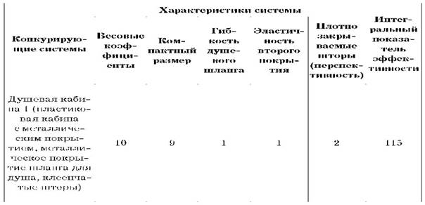 В данной методике бенчмаркинга вида G3: ID значение параметров продукта из количества переводят в баллы, используя при этом десятибалльную шкалу исчисления. При этом минимальный балл присваивается значению параметра, который имеет наихудшую величину. «Идеальной» системе соответствует максимальный балл и определяется по техническому или физическому пределу параметра. Если рассматривать наш пример, минимальный балл по параметру «компактность размера конструкции» присвоен душевой кабине под номером 3. Максимальный балл остается за системой, имеющей наиболее удачные размеры, соответствующие стандартным размерам ванных комнат. В нашем примере это душевая кабина 2. Таким способом проводится оценка уже достигнутого уровня параметров для всех систем. Следующим этапом бенчмаркинга G3: ID для каждой из систем является определение значения по критерию «плотно закрываемые шторы, перспективность», анализ чего показывает потенциал развития каждой системы. По данному параметру можно судить об уровне развития системы или ее положения на S-образной кривой эволюции развития технической системы и предела ее развития по основным параметрам. Процедура выявления этапа развития системы – анализ развития системы по основному параметру S-кривой эволюции – проводится при помощи набора ограниченного количества признаков, уже описанных в законах эволюции технических систем (ТРИЗ). В основном рассматривают четыре этапа развития технических систем. Основными признаками этапов технического развития системы являются: 1) динамика появления патентов; 2) уровень патентов; 3) прибыльность и производительность системы; 4) показатель «идеальности» продукта (равное отношение функциональности к необходимым затратам); 5) числовой показатель разновидности системы. При рассмотрении вышеуказанных таблиц может сложиться впечатление, что все рассматриваемые системы находятся примерно на одном уровне развития. Для точного определения уровня развития системы необходимо провести пошаговый анализ каждой детали системы на соответствие признакам, описанным выше. Также возможно рассчитать и предел развития системы. Для этого необходимо суммировать баллы, которые соответствуют предельным физическим или техническим значениям каждого из параметров этой системы. Такой параметр, как «перспективность», можно определить с учетом этапа развития системы и возможных пределов ее развития. Чем значительнее разница между уже достигнутым уровнем параметров, тем выше «перспективность». В нашем примере все системы находятся на одном уровне развития, перспективность данных систем можно определить техническими и физическими пределами развития системы. Перспективности данных систем практически достигли пределов своего развития и весьма низки. Перспективности систем 1, 2, 3 равны двум, системы 4 – единице.