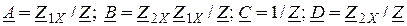 Решая полученные три уравнения совместно с уравнением связи коэффициентов AD – BC = 1 в несимметричном пассивном ЧП, находят его коэффициенты: