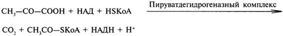 Заключительную стадию окислительного декарбоксилирования ПВК катализирует дигидролипоилдегидрогеназа, коферментом которой является ФАД. Кофермент отщепляет два атома водорода от дигидролипоевой кислоты, тем самым воссоздавая первоначальную структуру данного кофермента: