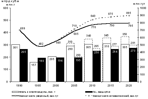 Согласно оценкам, при стабилизации цен нефти в диапазоне 18 - 20 долларов США за баррель российский экспорт топлива и электроэнергии увеличится (относительно уровня 2002 года) на 23-25% к 2010 году и 25-30% к 2020 году, а при регулярном росте цен до 30 долларов США за баррель экономически эффективный рост экспорта всех видов энергии из России будет соответственно 30-35% и 45-50%. Если же цены нефти в текущем десятилетии окажутся в диапазоне 13 - 15 долларов США за баррель, то экспорт энергоресурсов придется сократить на 10-15% относительно достигнутого уровня. На масштабах вывоза углеводородного сырья будет также сказываться удельный вес его производства с привлечением зарубежного капитала и на условиях соглашений о разделе продукции. В то же время экспортная политика должна предусматривать возможные значительные колебания цен на нефть, а также возможное снижение цен на газ в связи с либерализацией газового рынка Европы. В целях поддержания энергетической и экономической безопасности необходимо стремиться диверсифицировать направления экспорта энергоресурсов с развитием северного, восточного и южного направлений экспортных потоков российских энергоносителей и последующим увеличением их доли в географической структуре экспорта энергоресурсов. Получит развитие конструктивный диалог в области энергетики со странами Европы, остающимися на сегодняшний день основными потребителями российских топливно-энергетических ресурсов. Формы сотрудничества с европейскими партнерами будут включать реализацию совместных инвестиционных проектов, в первую очередь энерготранспортных, широкое вовлечение европейских инвесторов в проекты развития нефтегазодобычи на территории России (в том числе реализуемые на условиях соглашений о разделе продукции и концессий), взаимодействие в сфере энергосбережения. Во второй половине прогнозируемого периода возможен выход России на мировой рынок сжиженного природного газа, а также начало экспорта синтетического моторного топлива. Россия заинтересована в долгосрочном и масштабном вовлечении в свой топливно-энергетический баланс углеводородных ресурсов (особенно природного газа) центрально-азиатских стран Содружества Независимых Государств. Это не только позволит экономить ресурсы северных газовых месторождений России для будущих поколений и избежать необходимости форсированных капиталовложений в их разработку, но и даст возможность уменьшить давление на рынки, которые представляют стратегический интерес для самой России. В интересах России участие национальных компаний в проектах по расширению инфраструктуры транспорта энергоресурсов по территории стран Содружества Независимых Государств. Основными направлениями сотрудничества будут восстановление и дальнейшее развитие единой электроэнергетической системы, укрепление минерально-сырьевой базы, участие в разработке и эксплуатации месторождений нефти и газа и строительстве электроэнергетических объектов в странах Содружества Независимых Государств. К числу стратегических приоритетов относится и решение комплекса проблем на Каспии, включая подготовку конвенции по правовому статусу Каспийского моря. В качестве одного из ключевых участников мирового энергетического рынка Россия должна активно влиять на установление обоснованных 