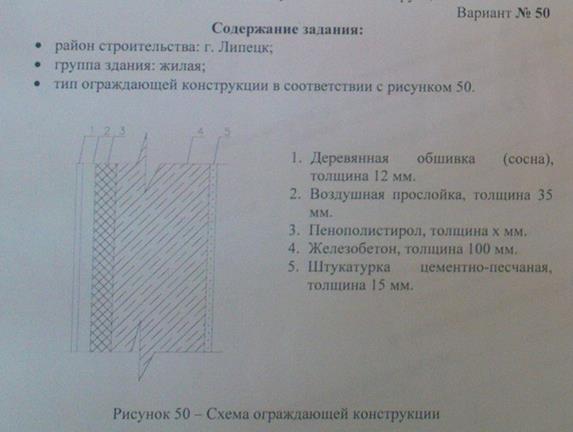 Исходные данные: - район строительства - г. Липецк; - группа здания – жилая; - расчетная средняя температура внутреннего воздуха жилого здания, - относительная влажность внутреннего воздуха жилого здания, - расчетная температура наружного воздуха в холодный период года, °С, принимаемая равной средней температуре наиболее холодной пятидневки обеспеченностью 0, 92, Расчетный коэффициент теплопроводности материала слоев О.К. Мы принимаем конструкцию наружной стены, указанную на рис.1.