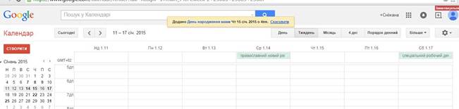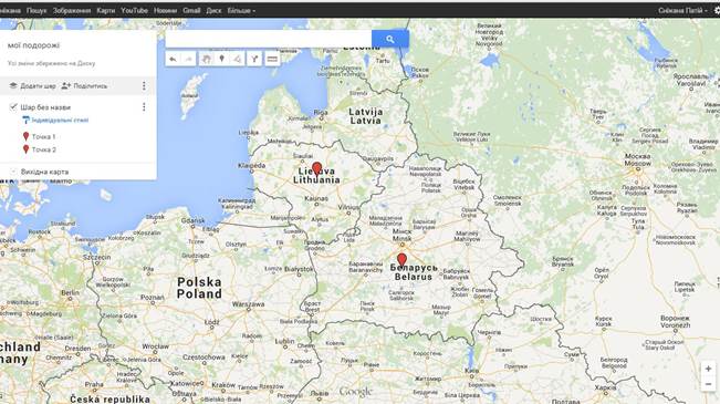 8. На сервісі Google «Календар» створила нагадування про дні народження вашої сім’ї чи друзів. 9. На сервісі Google «Карти» створила власну карту з позначенням міст де ви подорожували.