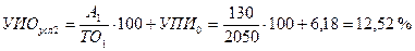 где А – сумма постоянных издержек обращения; УПИ – уровень переменных издержек к товарообороту, %. Для расчета влияния данных факторов на сумму издержек обращения можно использовать способ цепной подстановки и данные табл.2.10. ИО0 = ТО0 × УПИ0 /100 + А0 = 1729 × 6, 18 / 100 + 120 = 227, 0 млн руб. ИОусл1 = ТО1 × УПИ0 /100 + А0 = 2050 × 6, 18 /100 + 120 = 246, 7 млн руб. ИОусл2 = ТО1 × УПИ1 /100 + А0 = 2050 × 6, 34/100 + 120 = 250, 0 млн руб. ИО1 = ТО1 × УПИ1 /100 + А1 = 2050 × 6, 34/100 + 130 = 260, 0 млн руб. DИОобщ = 260 – 227 = +33 млн.руб. В том числе за счет изменения: а) объема товарооборота DИОто = 246, 7 – 227 = +19, 7 млн руб.; б) уровня переменных издержек обращения DИОупи = 250 – 246, 7 = +3, 3 млн руб.; в) суммы постоянных издержек обращения DИОа = 260 – 250 = +10 млн руб. После этого следует проанализировать факторы изменения среднего уровня издержек обращения: