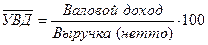 Основным источником доходов от торговой деятельности являются торговые надбавки, а по некоторым товарам – торговые скидки по реализованным товарам. Сумма реализованных надбавок и скидок составляет валовой доход торгового предприятия (ВД). Расчетным путем его определяют как разность между выручкой (нетто) и покупной стоимостью реализованных товаров. Отношение суммы валового дохода к объему выручки, выраженное в процентах, называется средним уровнем валового дохода (УВД):