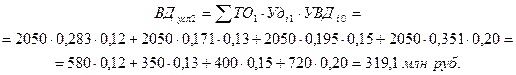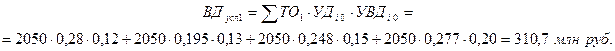 Общее изменение суммы валового дохода DВДобщ = 340, 3 –262, 0 = +78, 3 млн руб.; в том числе за счет: а) объема товарооборота DВДто = 310, 7 – 262, 0 = +48, 7 млн руб.; б) структуры товарооборота