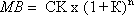 де: МВ – нарощена сума кредиту, тобто сума кредиту разом з капіталізованими відсотками; CK – початкова сума кредиту; К – річних відсоткова ставка; n – кількість років. На практиці складний процент нараховується частіше, ніж один раз на рік. Якщо m є кількість разів нарахування складного процента, то майбутню вартість можна обрахувати за формулою: