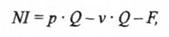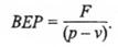 де F – величина постійних витрат за період часу, a v — величина змінних витрат на одиницю продукції. Точка беззбитковості (ВЕР) за визначенням відповідає умові NІ = 0, звідки: