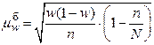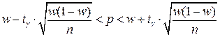Очевидно, якщо обсяг вибірки п набагато менший за обсяг генеральної сукупності N (n< < N), то n/N ≈ 0 і формули (2.1) – (2.3) майже збігаються з формулами (2.4) – (2.6). Тому у статистичній практиці прийнято вважати, що якщо n/N < 0, 05, то надійні інтервали можна знаходити за більш простими формулами (2.1) – (2.3) незалежно від схеми відбору. Слід зауважити, що формули для μ х та μ w виведено в припущенні відповідно нормального та біноміального розподілів генеральної сукупності, проте на практиці вони використовуються незалежно від виду розподілу останньої.