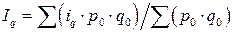 Загальний індекс цін у формі (5.19) являє собою середню гармонічну зважену із відповідних індивідуальних індексів цін для кожного виду товару і називається загальним середньогармонічним індексом цін. При цьому вагами для ір виступають вартості відповідного виду товару у поточному періоді. Загальний індекс фізичного обсягу у формі (5.20) являє собою середню арифметичну зважену з відповідних індивідуальних індексів фізичного обсягу по кожному виду товару і називається загальним середньоарифметичним індексом фізичного обсягу. При цьому вагами для іq виступають вартості відповідного виду товару у базовому періоді. Необхідно підкреслити, що формули (5.9) і (5.19) (як і (5.10) та (5.20)) виражають один і той же загальний індекс Ір (Іq), тільки записаний у різних формах – відповідно агрегатній та середньозваженій. На практиці формулами (5.19) та (5.20) зручно користуватись у випадках, коли немає даних, необхідних для використання формул (5.9) та (5.10).