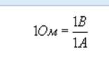 Цю величину R називають електричним опором провідника. Електричне опір вимірюється в Омах. Електричним опором 1 Ом має таку ділянку ланцюга, на якому при силі струму 1 А напруга дорівнює 1: