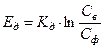 де K д – коефіцієнт дифузійної електрорушійної сили: