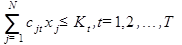 де хj – частка проекту j, що приймається; bj – ЧТВ проекту j в період його існування; cjt – інвестиції, необхідні проекту j в році t; Kt – фінансові ресурси в році t; N – кількість проектів; wj –обіговий капітал для проекту j; mj – управлінські витрати на проект j; pj– витрати на охорону навколишнього середовища проекту j; W – обіговий капітал; M– управлінські витрати; P – витрати на охорону навколишнього середовища.