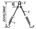 | Строп двухветвевой 2СК-5/2200(2СК-2, 5/2000) в комплекте: 1-звено Рт1-5(2, 50); 2-строп ВК-4/3000(ВК-2/3000); 3-крюк К1-4(К1-2); 4-подкладка под канат.