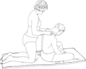 Рис. 63. Массаж спины и плечевого пояса • Удалось ли почувствовать контрактированные и спастичные мышцы? Есть люди, у которых мускулатура в этой области тела не спастична! • Опустились ли плечи партнера по мере воздействия? Расслабились ли они? • Глубоко ли он дышал? Доставил ли ему удовольствие ваш массаж?