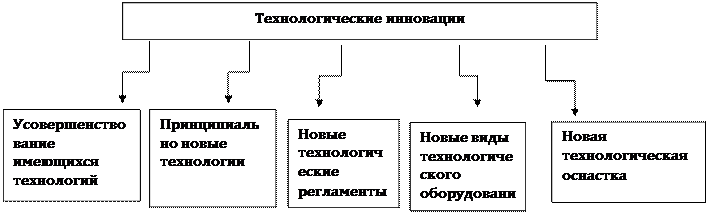 o Продуктовые или процессные o Маркетинговые, технологические или продуктовые o Стратегические или адаптационные Технологические инновации – инновации в области технологии, усовершенствование технологии, применение принципиально новых технологий в производстве выпускаемого продукта, освоение новых технологических регламентов, новых видов технологического оборудования и технологической оснастки.