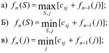 Какое из рекуррентных соотношений для решения п-этапной задачи нахождения оптимального маршрута перевозки груза из города А в город В является верным, если S — состояние системы, a j — номер города?