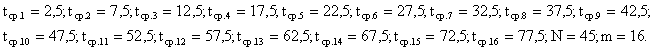 Задача 1.6. В результате наблюдения за 45 образцами радиоэлектронного оборудования получены данные до первого отказа всех 45 образцов, сведенные в табл.1.1. Требуется определить mе*. Таблица 1.1