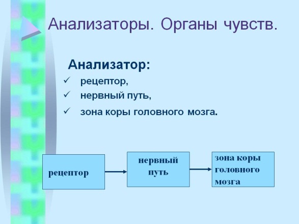 | Рецепторы, воспринимающие боль, тепло, холод, давление, прикосновение