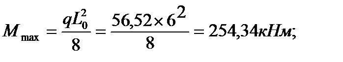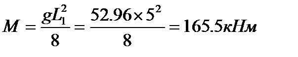 gn= РnL2gn = 7, 8´ 5´ 0.95=39 ´ 0.95=37, 05 кН/м где: L1 =5м– пролет балки (ригеля) L2 =5м– шаг балок (ригеля) gn – коэффициент надежности по назначению здания gn= 0.95 для зданий 2-го класса ответсвенности Расчетный максимальный изгибающий момент