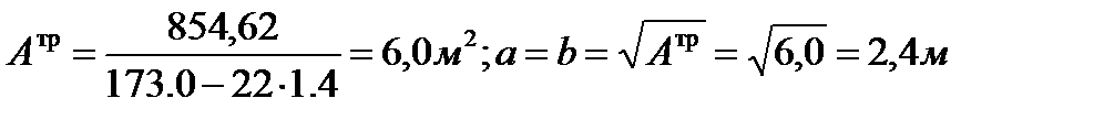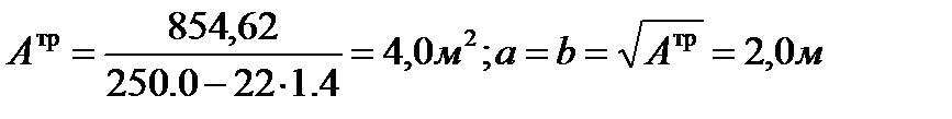 gср = 22 кН/м3 - усредненный удельный вес материала фундамента и грунта на его уступах. Площадь подошвы квадратного в плане фундамента с размерами сторон: принимаем a ´ b =2, 1´ 2, 1 м =4, 41 м2