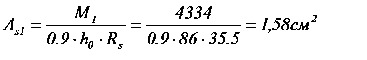 Принимаем высоту фундамента: h=900 мм Высота нижней ступени 300 мм h0 = 90 - 4 = 86 см h01 = 30 - 4 = 26 см