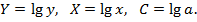 Получим линейное уравнение: ___________________. Выполнив его потенцирование, получим: _____________________________________________ Подставляя в данное уравнение фактические значения x, получаем теоретические значения результата