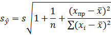 где s - стандартная ошибка; хпр - новое значение признака, для которого был сделан прогноз;