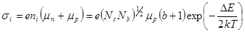 де ni – концентрація носіїв заряду в області власної електропровідності; Nc, Nb – ефективні густини квантових станів у зоні провідності та валентній зоні відповідно; DЕ – ширина забороненої зони; Т – абсолютна температура; mn, mp – рухливість електронів і дірок. Величина