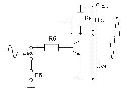 Изменения напряжения на входе транзистора вызывают соответствующие изменения тока 1Э, а следовательно, и тока 1К. Это приводит к изменению падения напряжения на RH, в результате чего изменяется и напряжение Uкэ на коллекторном переходе