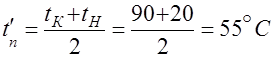 Определяющей температурой является полусумма температур рабочего тела (воздуха) и стенки. Например, если средняя температура одностенной крышки пищеварочного котла к концу разогрева составляла 90 оС, а начальная температура ее была 20 оС, то средняя температура крышки в период разогрева будет равна: