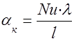 В условиях стационарного режима работы оборудования за определяющую температуру принимают предельную (конечную) температуру нагрева соответствующей поверхности ограждения. За температуру отдельных поверхностей оборудования к концу разогрева и при стационарном режиме работы можно принять: а) для вертикальных поверхностей tк = 60 – 650С; б) для крышек варочного оборудования tк = 85 – 900С; в) для крышек жарочного оборудования tк = 160 – 180 0С. По величине определяющей температуры воздуха по таблице прил. 1 выбирают физические параметры воздуха: коэффициент температуропроводности а, коэффициент теплопроводности l, коэффициент кинематической вязкости v, затем находят произведение (Gr× Pr), с и n и численную величину критерия Nu По значению критерия Нуссельта определяется коэффициент теплоотдачи конвекцией:
