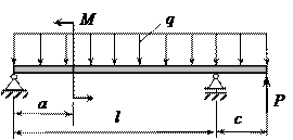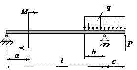 Цель – оценить знания и практические навыки обучаемых по теме «Прямой поперечный изгиб» в объеме требуемой программы. Задание: для балки (рис. 5) построить эпюры поперечных сил Q и изгибающих моментов Мизг по заданным условиям (табл. 5).