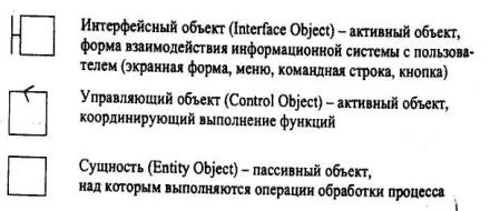 Классы объектов могут иметь различные стереотипы поведения: объекты-сущности, управляющие объекты, интерфейсные объекты: