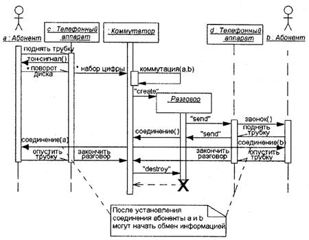 Диаграмма последовательности для моделирования телефонного разговора представлена ниже на рис.
