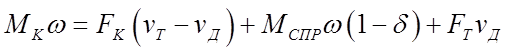 Отношение Отношение касательной силы тяги колеса к вертикальной нагрузке назовем коэффициентом сцепления. Соответственно Произведем оценку баланса мощности, подводимой к ведущему колесу при качении его по деформируемой поверхности. Умножая обе части уравнения моментов на угловую скорость колеса, получаем следующий баланс мощностей: