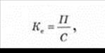 де Кз — коефіцієнт завантаження оборотних коштів (грн/грн.). Він характеризує величину оборотних коштів на 1 грн реалізованої продукції. Чим менше оборотних коштів припадає на одну гривню реалізованої продукції, тим краще вони використовуються. Коефіцієнт ефективності (Ке) визначається за формулою: