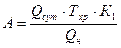 где Qсут – количество изделий, поступающих в сутки; Тхр - продолжительность хранения; ; К1 - коэффициент, учитывающий потери площади; Qн - нормативный объем изделий, на 1 м2 площади, штук условный кирпич.