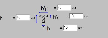 Информация о расчете: Дата выполнения расчета: 15.12.2014 10: 17: 05; Исходные данные: Размеры элемента: - Пролет элемента l = 630 см = 630 / 100 = 6, 3 м; Коэффициенты условия работы: - Коэффициент условия работы бетона gb2= 0, 9; Усилия: - Изгибающий момент (от всех нагрузок; относительно нейтральной оси) M = 29, 72101 тс м = 29, 72101 / 101, 97162123 = 0, 29146 МН м Размеры сечения: - Высота сечения h = 45 см = 45 / 100 = 0, 45 м; Расстояния от арматуры до грани бетона: - Расстояние от равнодействующей усилий в арматуре S до грани сечения a = 3 см = 3 / 100 = 0, 03 м; - Расстояние от равнодействующей усилий в арматуре S' до грани сечения a' = 0 см = 0 / 100 = 0 м; Размеры таврового или двутаврового сечения: