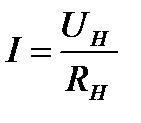 Рисунок 1.2 - Розрахункова схема ділянки електричного кола експериментальної установки. На розрахунковій схемі введені наступні умовні позначення: UН – напруга на затискачах освітлювальної установки (на навантаженні), В; RН – опір освітлювальної установки (навантаження), Ом; I – сила струму в колі (на ділянці навантаження), А.