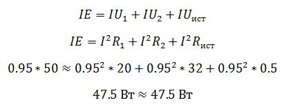 Преимущество проверки балансом мощностей в том, что не нужно составлять сложных громоздких уравнений на основании законов Кирхгофа, достаточно знать ЭДС, напряжения и токи в цепи.