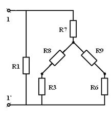 Элементы , , соединены в трехлучевую звезду, которую можно преобразовать в треугольник с сопротивлениями: , , .