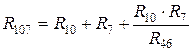 В последнем примере сопротивление закорочено, а сопротивления , , имеют только одну общую точку со схемой и поэтому они не учитываются. Сопротивления и включены последовательно и эквивалентное им сопротивление , а и включены параллельно, поэтому: