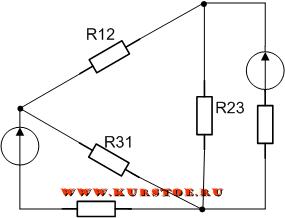 Для электрической цепи необходимо выполнить преобразование треуголькника R12 - R23 - R31 в звезду.