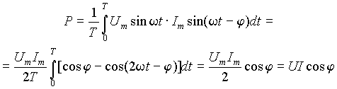 Пусть u = Um sinw t и Im sin(w t -j), тогда средняя мощность будет равна