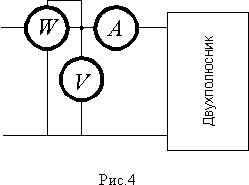 Для этого на вход цепи включают приборы по схеме рис. 4 и по их показаниям определяют коэффициент мощности в виде