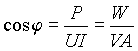 Учитывая, что активные составляющие тока и напряжения можно выразить через резистивную состаляющую комплексного сопротивления цепи как I а= U / R или U а= IR, выражение (4) можно записать также в форме