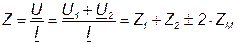 где Знак плюс относится к согласному, а знак минус ко встречному включению. Следовательно, L = L1 + L2 ± 2M. Полное сопротивление при согласном включении больше, чем при встречном. Напряжения на элементах имеют по три составляющие: