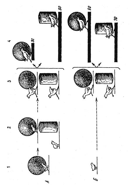 различные, но функционально тождественные формы следования — истинно врожденная и индивидуально приобретаемая, причем вторая форма образуется путем чисто факультативного научения (ведь курица подкрепляет следование своих цыплят кормом и обогревом). Очевидно также, что первая форма со временем все больше перерастает во вторую, иными словами, реакция следования претерпевает качественную перестройку, теряя свою первоначальную врожденную сущность. Одновременно врожденное узнавание переходит в благоприобретаемое узнавание, основанное на индивидуальном опыте. Все это указывает на значение раннего факультативного (а не только облигатного) научения для полноценного проявления инстинктивных элементов поведения. Иными словами, уже на первых этапах постнатального развития врожденное поведение нуждается в участии научения в обеих его формах, которые при этом сливаются с ним. Этим прежде всего и характеризуется сущность всего поведения животных на ранних этапах постнатального онтогенеза.